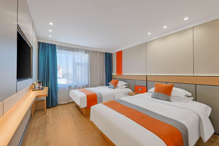 酒店位于长春市九台区东湖镇金牛大街717号,酒店地理位置优,距长春龙嘉国际机场和龙嘉高铁站仅8分钟车程,(酒店提供接送机站服务);天定山滑雪场、长春冰雪新天地、莲花山花海景区驾车20分钟皆可达;距庙香山风景区、莲花山滑雪场、莲花山巴图鲁乐园约30分钟车程;酒店周边各类可口美食,火锅、烧烤、家常菜等一应俱全,尤其是东北菜,铁锅炖、锅包肉、酸菜、小鸡炖蘑菇等,满足您的味蕾。酒店周边配备齐全,附近银行、餐饮、超市等场所一应俱全。酒店配有大床、双床、家庭房等各类客房,客房内全部采用梦百合零压床垫,非温感零压绵,使您一年四季都能享受轻松舒适的云感睡眠,可压缩卷装独立静音弹簧系统,提供良好支撑性的同吋使您和伴侣互不干抗,让您安享整晚睡眠。“好睡眠,住华驿”