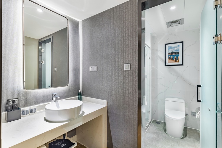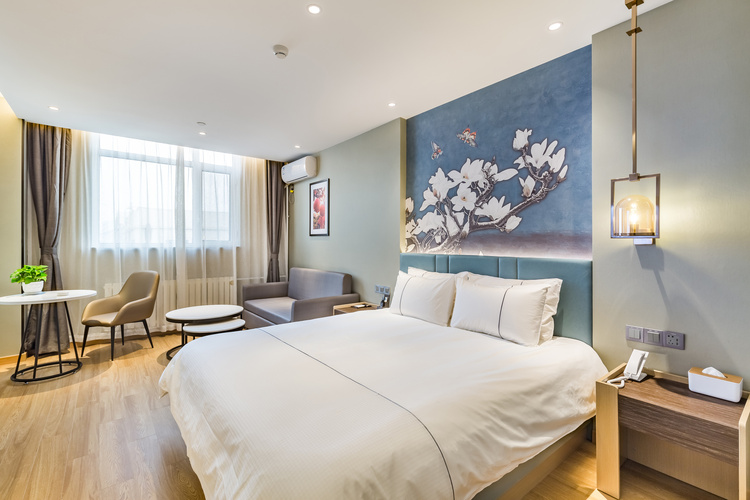 酒店地处烟台莱山区核心商圈,周边商务、旅游、购物、餐厅等设施众多,交通便利。 酒店距离银座购物商城、宝龙广场300米; 烟台振华购物商厦600米; 烟台市人民政府、毓璜顶莱山分院、佳世客、莱山万象汇约5-8分钟车程; 烟台大学、滨州医学院烟台校区、烟台山医院东院区、烟台国际博览中心、烟台国际会展中心、烟台体育馆、烟台小吃街、烟大海水浴场,约10分钟车程; 山东工商行学院、烟台理工学院、黄海明珠、虞美人广场、高铁南站约10-15分钟车 烟台海昌鲸鲨海洋公园、第二海水浴场、海昌渔人码头、千与千寻铁轨,月亮湾、栈桥、东炮台公园约18分钟车程; 酒店配有大型免费停车场,设有近百个车位,内设会议室,配备大型LED高清电视、投影等会议设备,拥有可接待100多人多媒体会议厅,并可提供会议餐服务。 酒店设计采取时尚简约的欧式装修风格,让您在商务和出游之余享受到淡雅清新、舒适静谧的休闲时光。——便捷交通·品质商旅·舒心体验