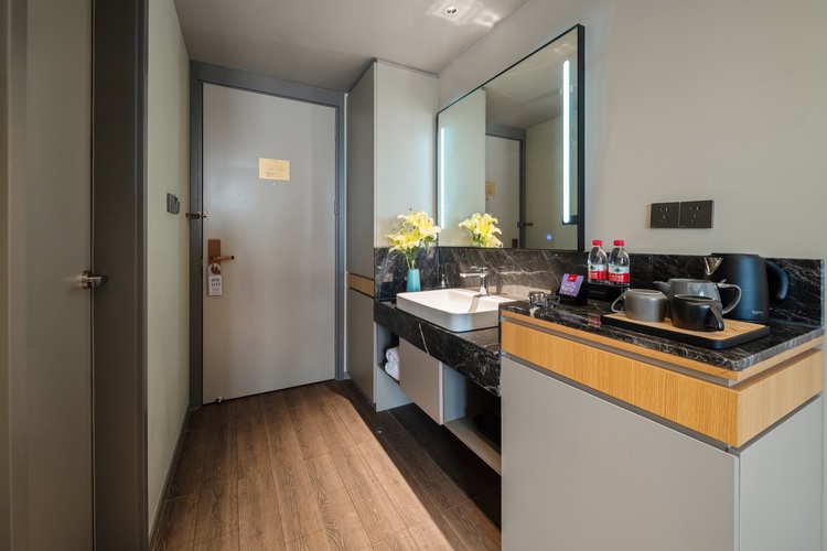 【酒店位置】本店坐落于重庆市沙坪坝区小龙坎正街333-27号(重庆银行旁路口进去20米、诺丁阳光小区口),与沙坪坝高火车站、龙湖金沙天街仅一街之隔,步行10分钟即可到达。 【酒店风格】酒店采用欧式现代主义装修风格,定位于有品味的商旅酒店,不仅是一处休憩的港湾,更是一段关于美的探索与体验,带您感受这份独特的欧式现代风,开启一段美好的旅居之旅。小区里的酒店带您感受宁静与舒适的城市绿洲。 【周边交通】距离石碾盘公交站2分钟,距离沙坪坝火车站步行10分钟,距离重庆西站约15分钟车程,距离重庆北站约30分钟车程,距离江北机场T2\T3约40分钟车程。 【旅游景点】距离三峡广场步行10分钟;周边有沙坪公园、歌乐山、磁器口古镇,另还有红色经典路线:渣滓洞、白公馆等,距离磁器口轻轨3个站直达;门口轻轨公交直达重庆各大网红打卡地。 【美食购物】周边三峡广场购物,特色火锅、小面、江湖菜、串串一应俱全,让您的重庆之行更热辣滚烫。 【商务休闲】拥有洗衣房,商务区配有现磨的咖啡,24小时空调和热水,我们不仅准备了舒适的睡眠环境,精美自助早餐,宽敞明亮的会议室,更以“知心服务,匠心品质”开启每一位宾客在旅途中的美好体验