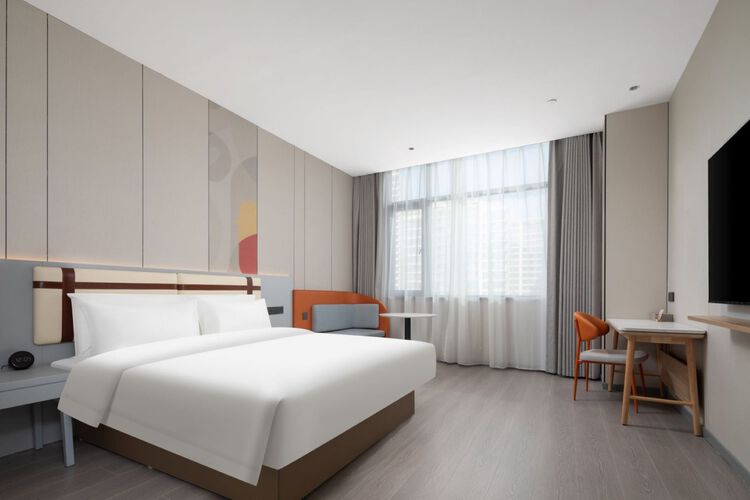 如家商旅2.5(西安高新软件新城鱼化寨地铁站店)位于雁塔区西三环与天谷一路交汇处,紧邻地铁3号线鱼化寨站,地处西安未来科技城核心区。作为首旅如家升级商旅品牌,酒店以"现代商旅美学空间"为设计主轴,通过全景落地窗将自然光与城市景观引入大堂,营造商务休憩融合场景。客房主打"轻居美学",采用低饱和度莫兰迪色系,配备智能马桶、声控灯光系统、65寸高清电视及高速网络,平衡商旅效率与居住舒适度。二楼明档餐厅全天候供应时令鲜食与全球风味,搭配24小时现磨咖啡吧,满足多元餐饮需求。商务配套方面,酒店设有免费高速Wi-Fi全覆盖的办公区、可预约会议室及文件打印服务,24小时自助洗衣房配备烘干熨烫一体机与智能储物柜。区位优势显著:5公里半径内聚集华为研究所、环普产业园等科技园区,15分钟车程可达大雁塔、钟楼等文化地标,实现商务差旅与人文探索的高效切换。酒店通过竹影透光的客房设计、智能科技应用与交通枢纽优势,打造城市商旅新体验——清晨咖啡香与键盘声交织于全景窗前,现代效率与古城底蕴在此形成独特共鸣,为旅客提供兼具功能性与美学价值的暂栖空间。