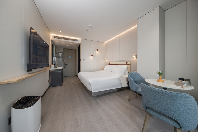 如家商旅(金标)扬州东关街个园店是首旅如家旗下中高端商旅酒店,酒店位于扬州市中心邗江区沿河街1号52幢3号,地处古运河风光带,步行2分钟即可轻松到达扬州著名旅游景点东关街(约400米),就近就可以欣赏到扬州园林个园,去富春品尝扬州早茶;酒店紧靠瘦西湖风景区约2公里,门口马路对面乘坐25/45路可至(约30分钟);距离扬州火车站和高铁东站均只有20几分钟车程,离扬州新兴热门景点大运河博物馆也仅有15分钟车程。酒店位置优越,配套设施齐全,交通出行便捷,环境优美,拥有免费停车位、智能化客房、智能机器人、自助洗衣房和餐厅、干净的卫生,高品质的床品、温馨得体的服务等一系列优质条件,旨在为各位宾客打造出一处时尚、轻快有活力、舒适有颜值的休息的港湾。