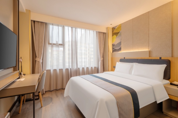 如家商旅烟台火车站客运码头店位于芝罘区北马路南侧,座落于烟台市繁华核心商圈地带,与烟台高铁火车站进站口仅百米相隔一条马路,距离烟台港客运站步行约1公里,距离蓬莱国际机场约36公里,与烟台汽车总站步行仅1公里;酒店西侧毗邻烟台三站小商品批发城,与大润发超市以及中高端振华国际、大悦城、万达广场、吾悦广场等知名商业为临;距离烟台山景区、朝阳街步行街、所城里打卡点、第一海水浴场等景点约10分钟车程;酒店冷暖系统为独立嵌入式空调和市政供暖相结合;客房独立WIFI;酒店二楼配套中西自助美食早餐;您可尽情享受吃住行和购物的便利。酒店拥有完善的设施以及多种房型,是如家酒店集团旗下的中高端产品。如家商旅以自然纯洁的欧洲现代主义设计风格和生活理念带给您全感官的品质体验,既可满足您商务出行的需要,亦能为居家旅行带来温馨的享受!